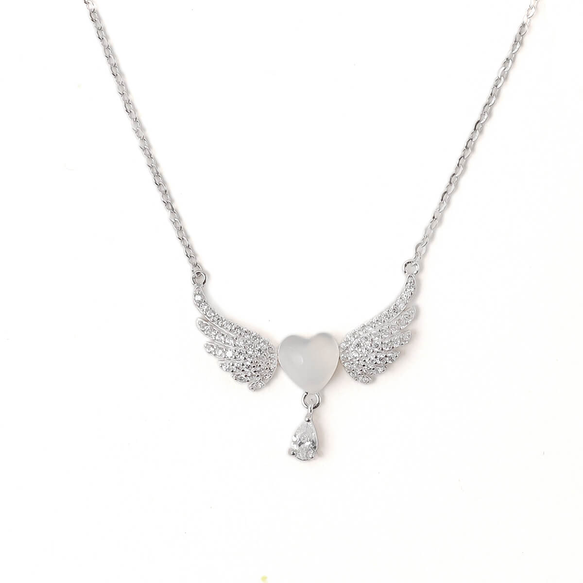 VEKENZA 925 Sterling Silver angle wings pendant chain,Original Rhodium Plated, Swiss Zirconia Gift for Women & Girls