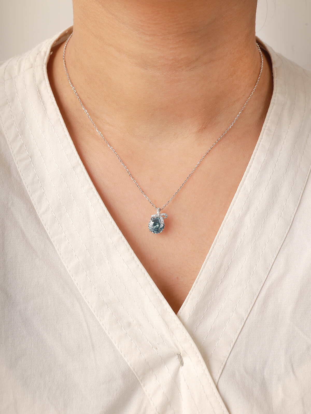 VEKENZA 925 Sterling Silver bow and stone pendant chain,Original Rhodium Plated, Swiss Zirconia Gift for Women & Girls