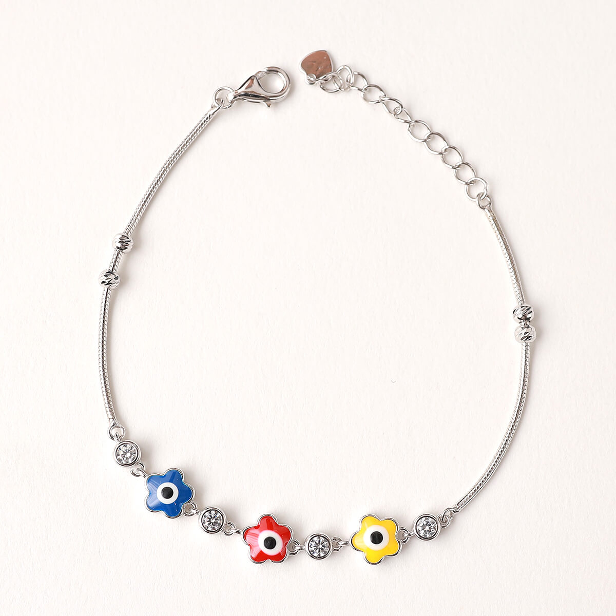 VEKENZA 925 sterling Silver flower shaped multi color evil eye Bracelet, Adjustable | Rhodium Plated Women Bracelet, Gifts for Her| Multiple Design Options