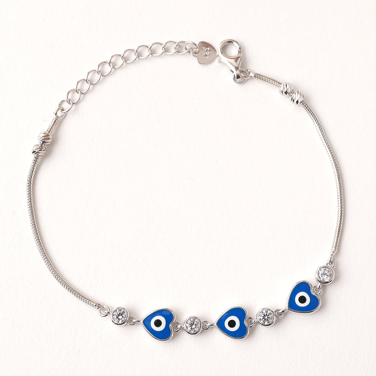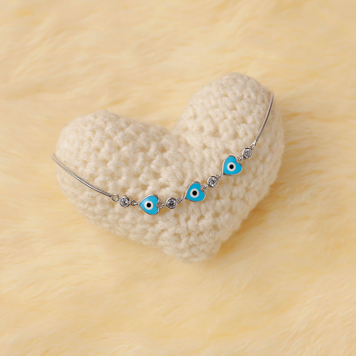 VEKENZA 925 sterling Silver heart shaped sky blue evil eye Bracelet, Adjustable | Rhodium Plated Women Bracelet, Gifts for Her| Multiple Design Options