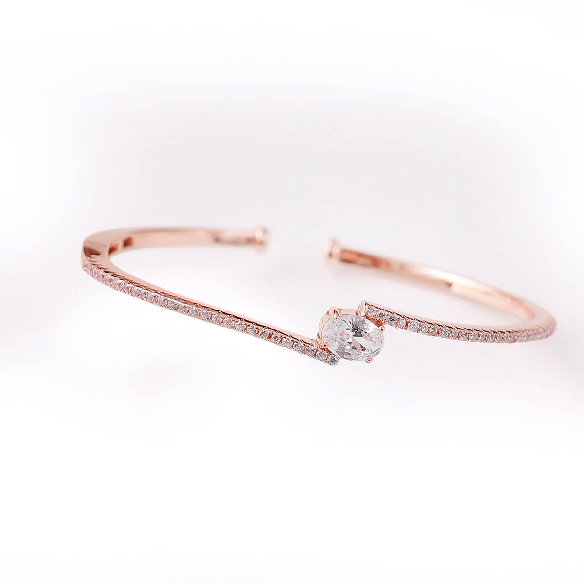 VEKENZA 925 Silver oval diamond Cuff Bracelet, Adjustable | Rhodium Plated Women Kada Bracelet, Gifts for Her| Multiple Design Options