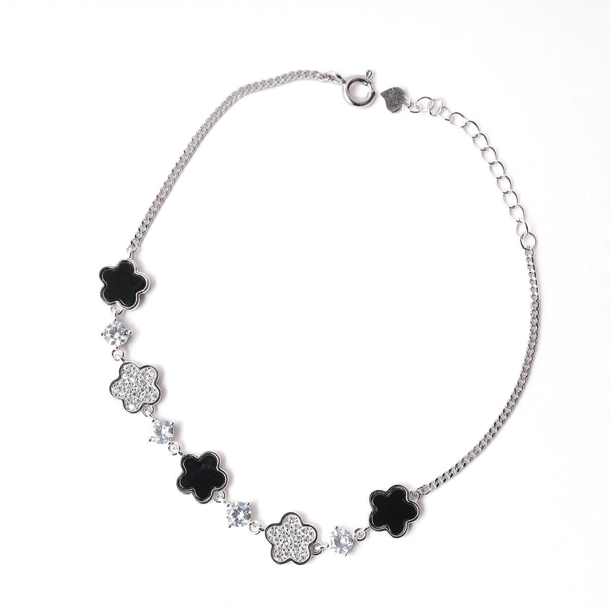 vekenza 925 sterling Silver black flower Bracelet, Adjustable | Rhodium Plated Women Bracelet, Gifts for Her| Multiple Design Options