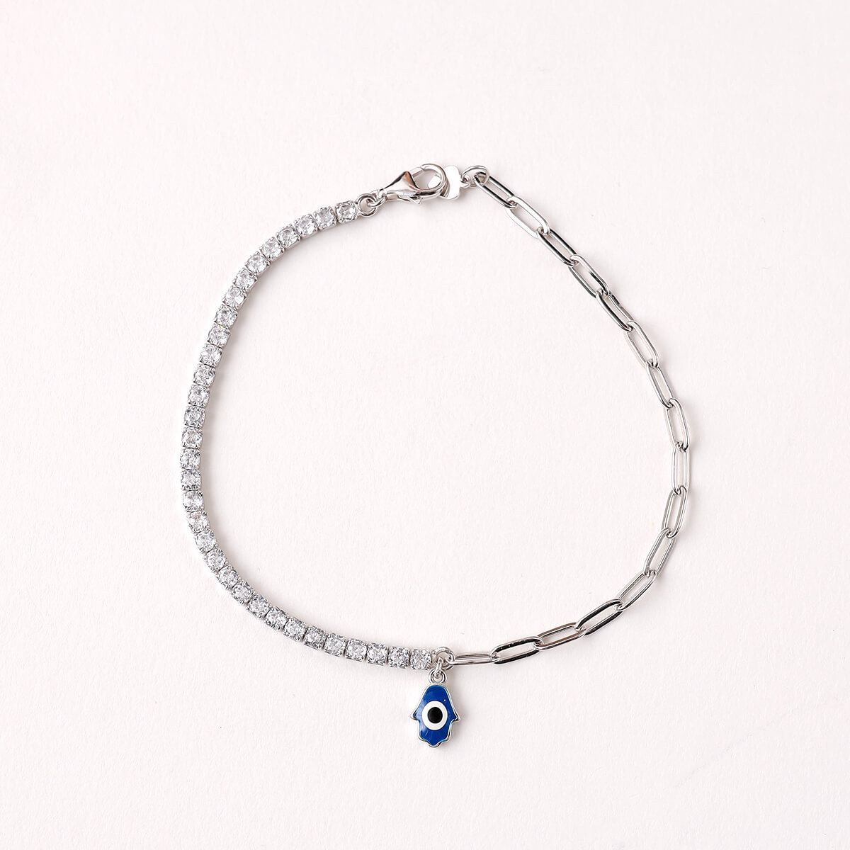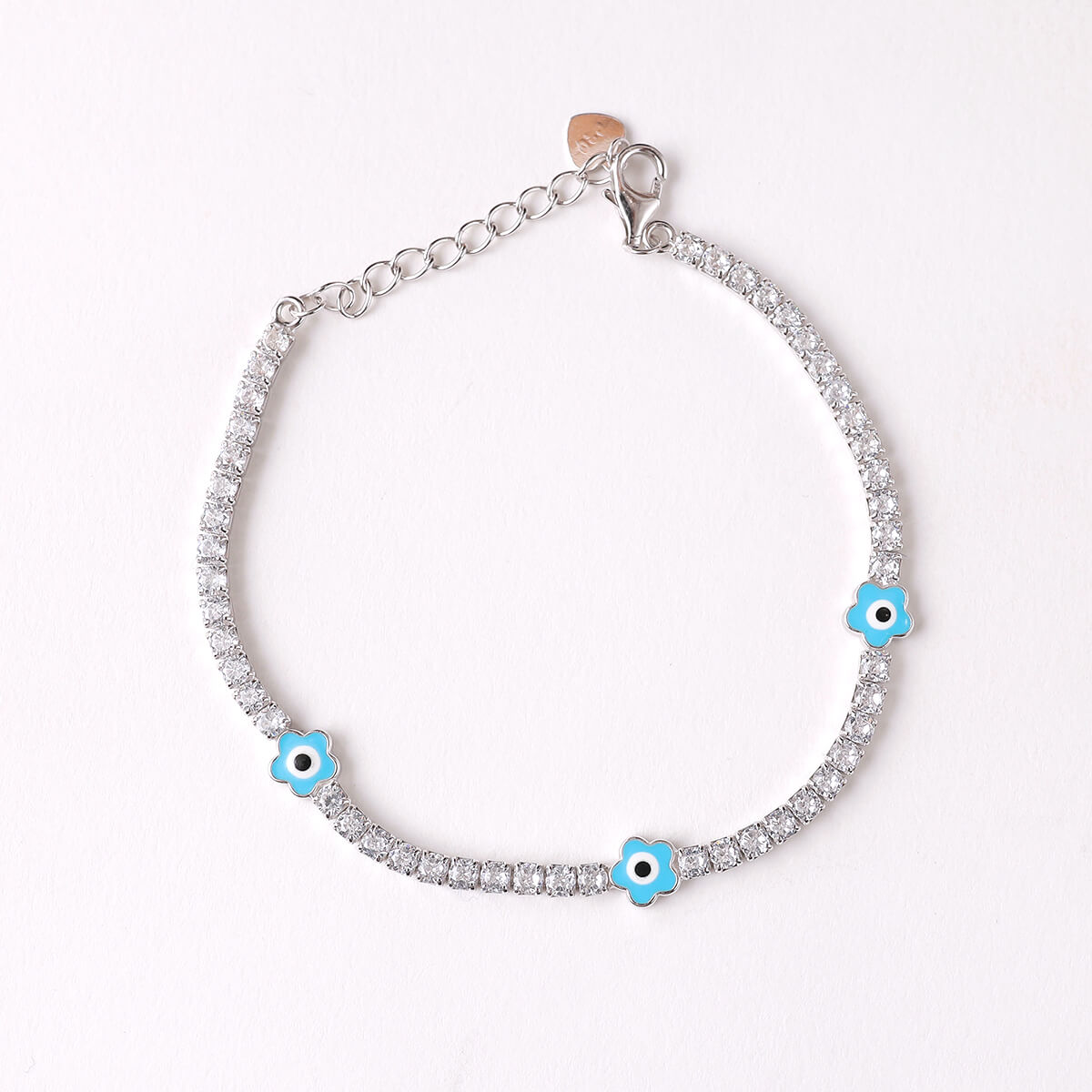 VEKENZA 925 sterling Silver diamond and flower skyblue evil eye Bracelet, Adjustable | Rhodium Plated Women Bracelet, Gifts for Her| Multiple Design Options