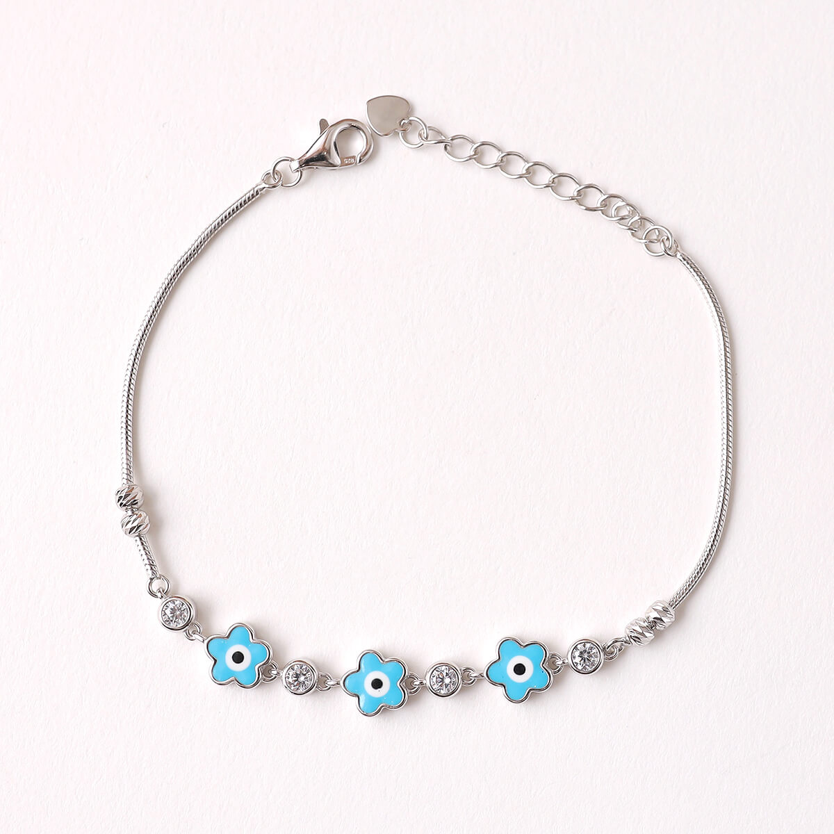 VEKENZA 925 sterling Silver flower shaped skyblue evil eye Bracelet, Adjustable | Rhodium Plated Women Bracelet, Gifts for Her| Multiple Design Options