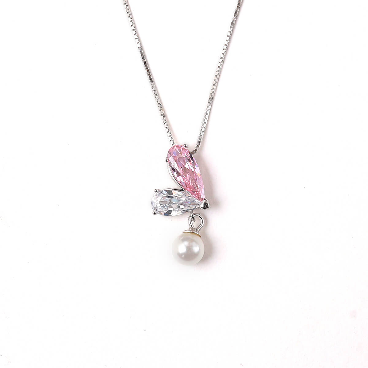 VEKENZA 925 Sterling Silver butterfly design with pearl pendant chain,Original Rhodium Plated, Swiss Zirconia Gift for Women & Girls