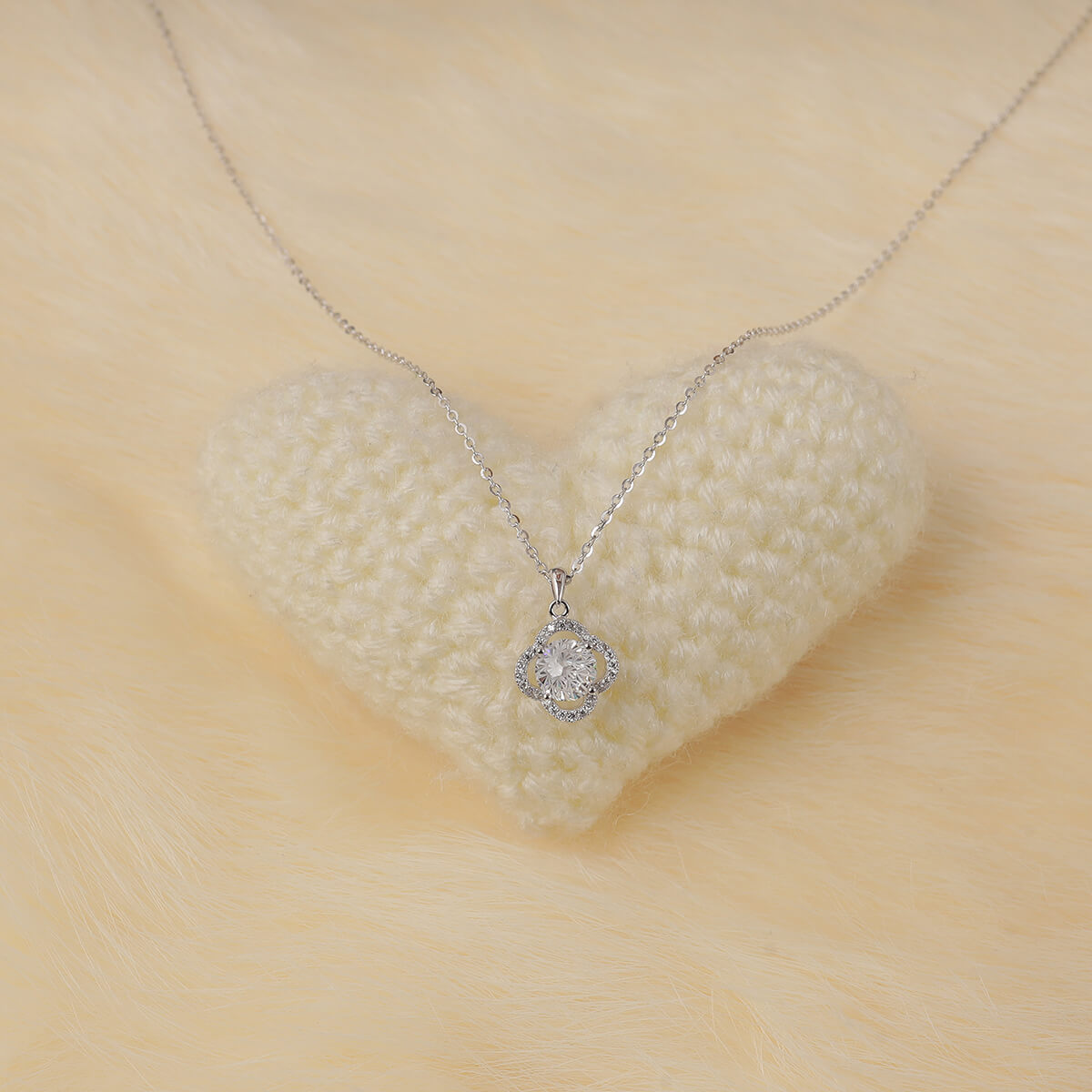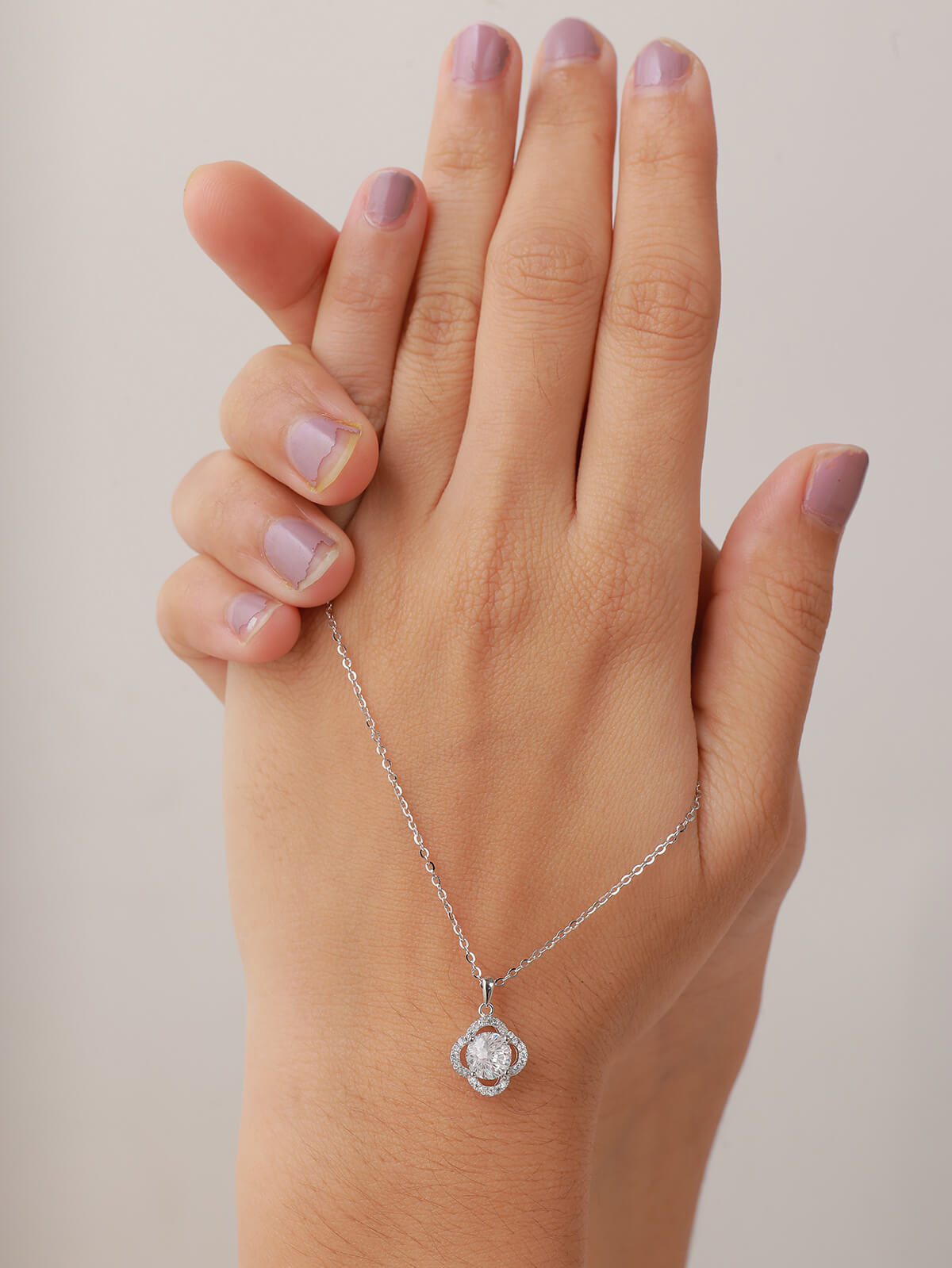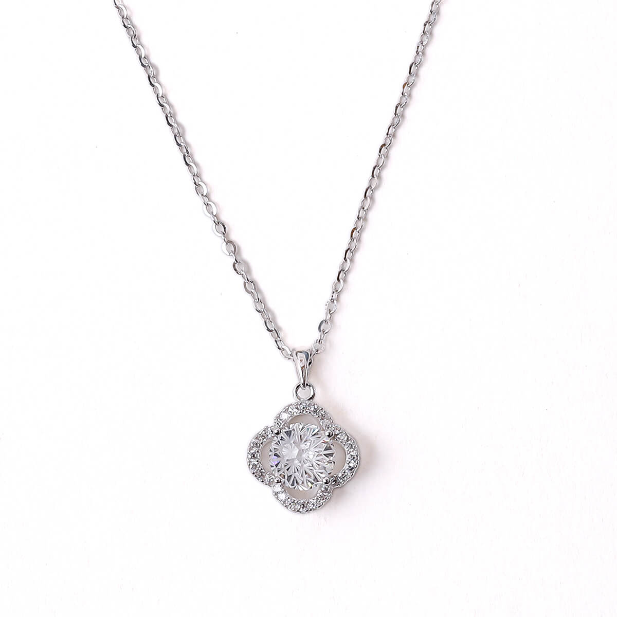 VEKENZA 925 Sterling Silver clover design pendant chain,Original Rhodium Plated, Swiss Zirconia Gift for Women & Girls