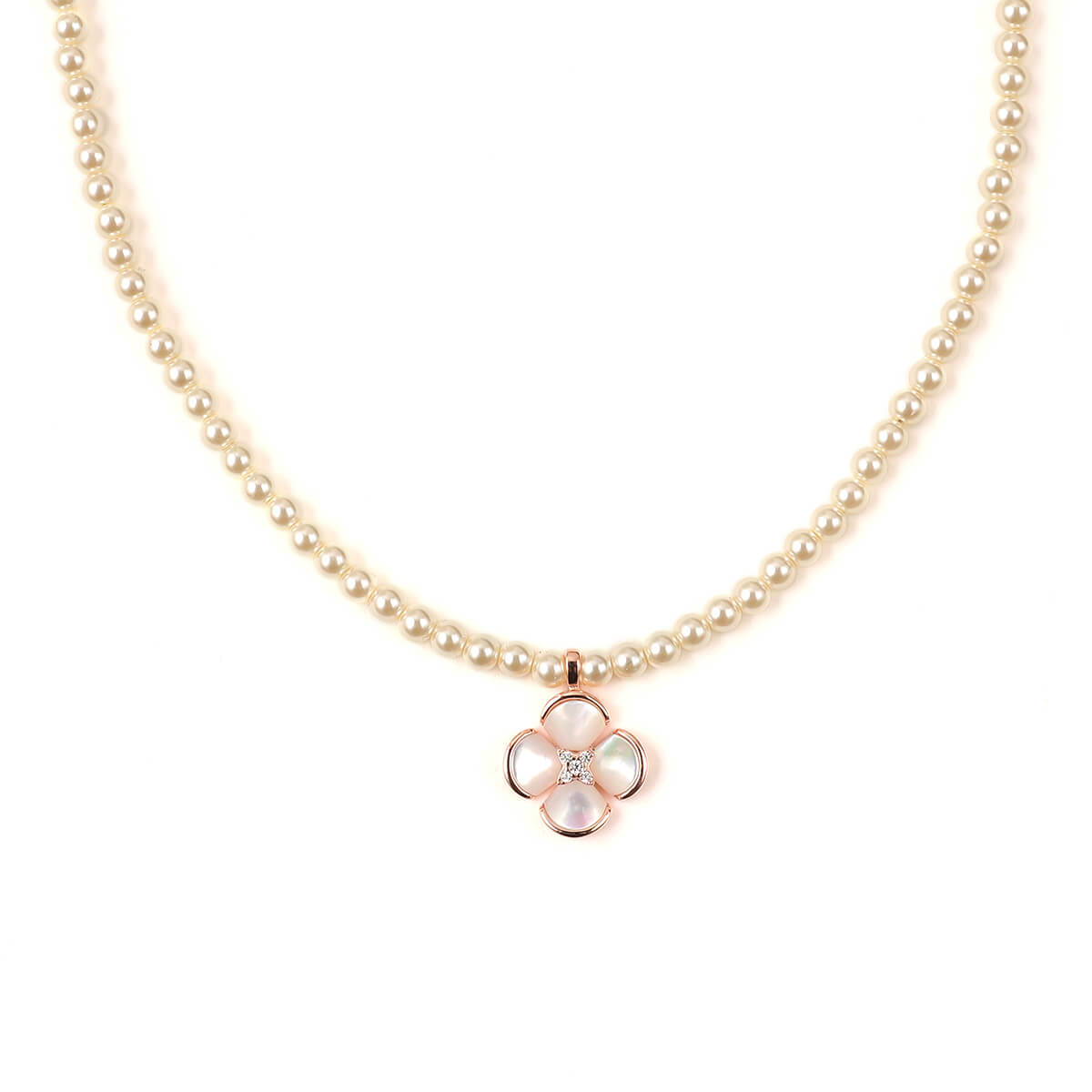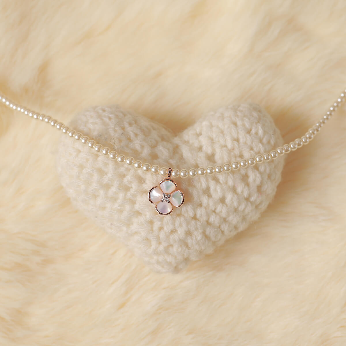 VEKENZA 925 Sterling Silver clover with pearl mala ,Original Rhodium Plated, Swiss Zirconia Gift for Women & Girls