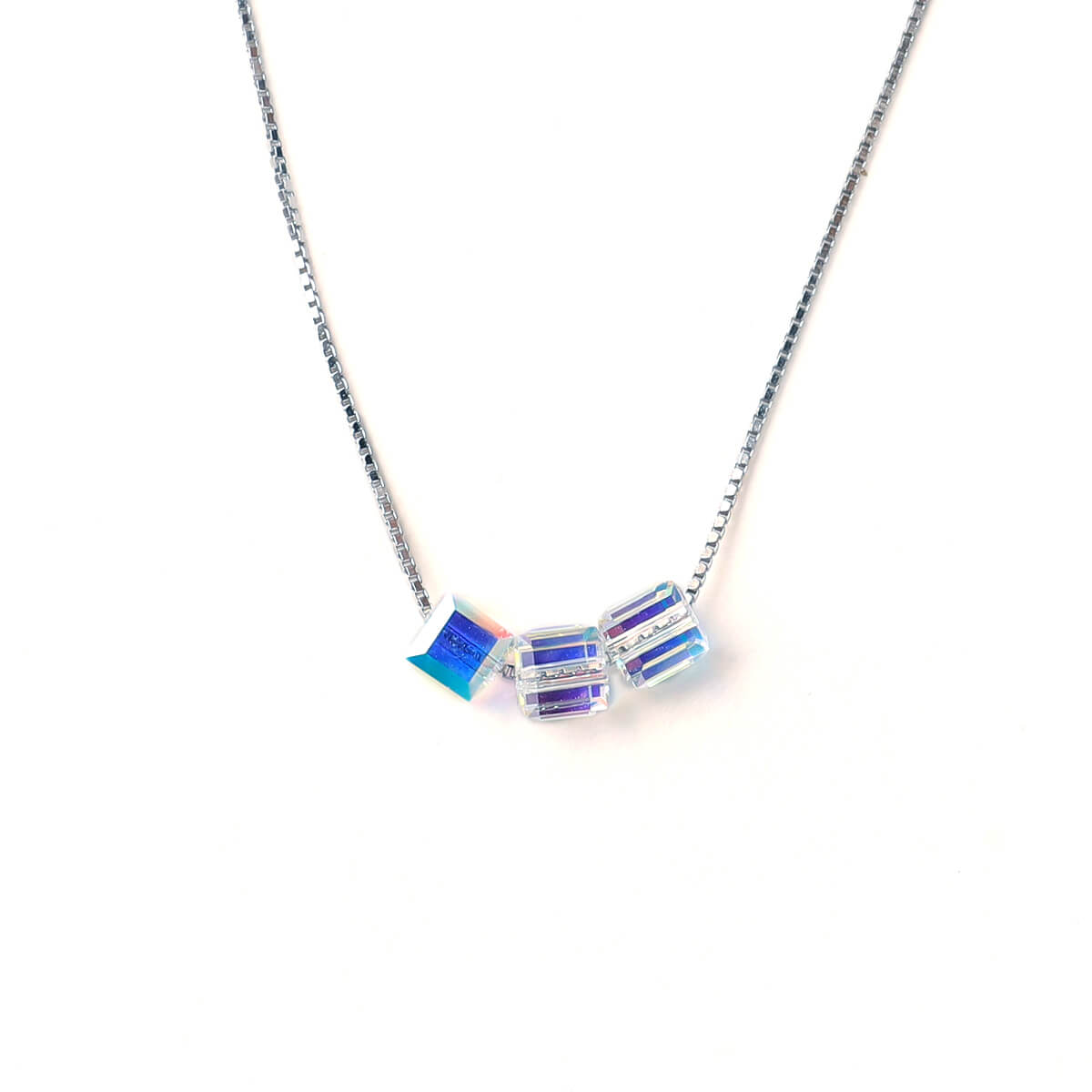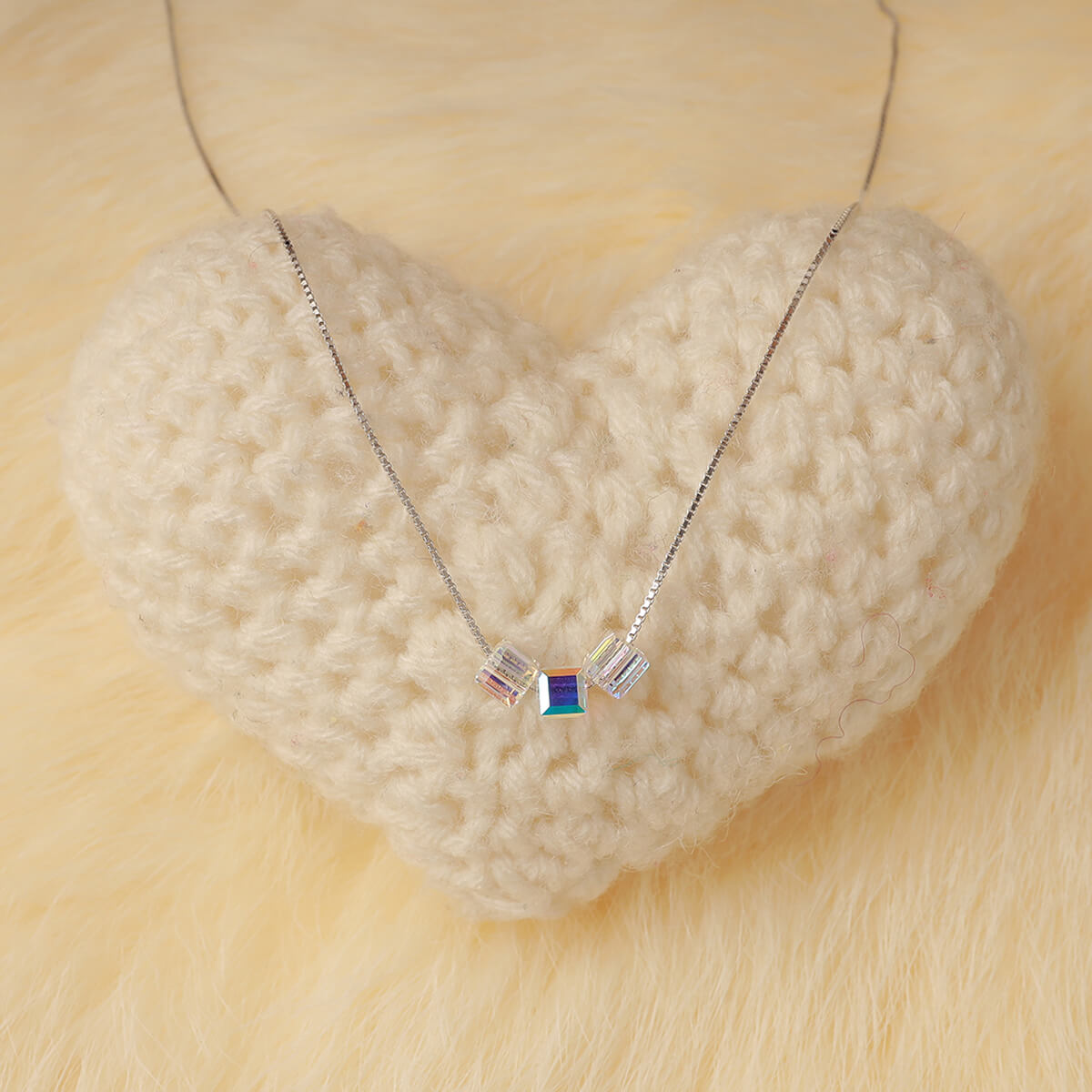VEKENZA 925 Sterling Silver cubes pendant chain,Original Rhodium Plated, Swiss Zirconia Gift for Women & Girls