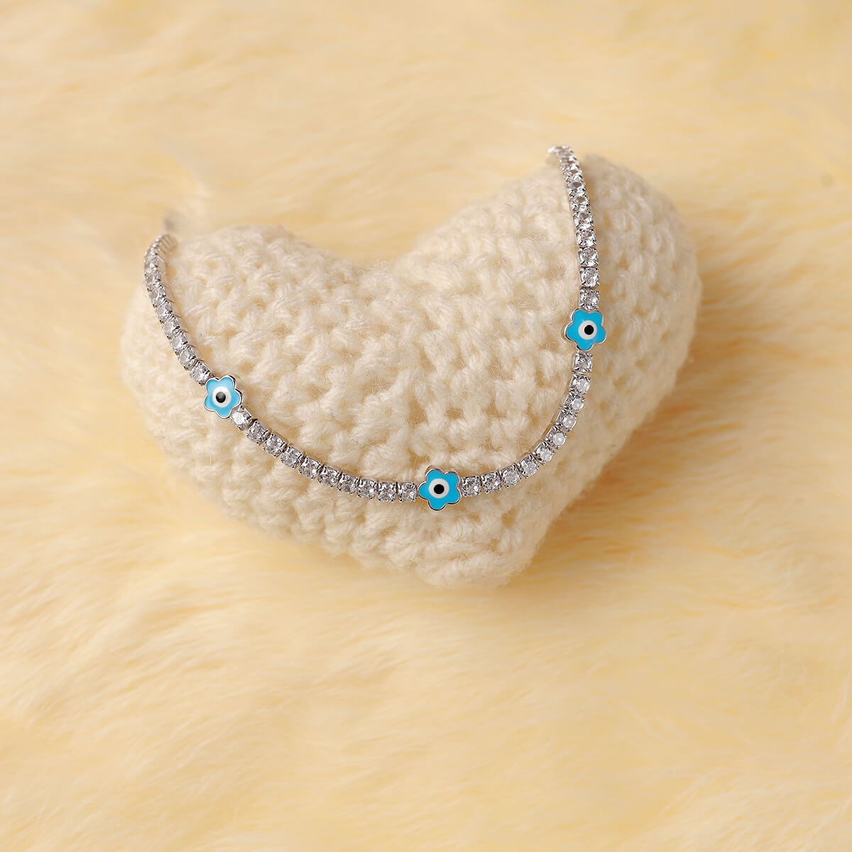 VEKENZA 925 sterling Silver diamond and flower skyblue evil eye Bracelet, Adjustable | Rhodium Plated Women Bracelet, Gifts for Her| Multiple Design Options
