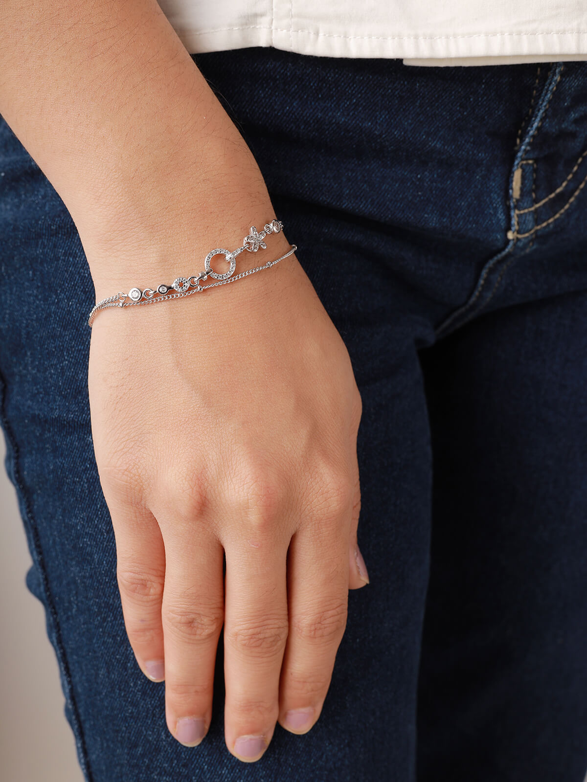 VEKENZA 925 sterling Silver flower & circle charm Bracelet, Adjustable | Rhodium Plated Women Bracelet, Gifts for Her| Multiple Design Options