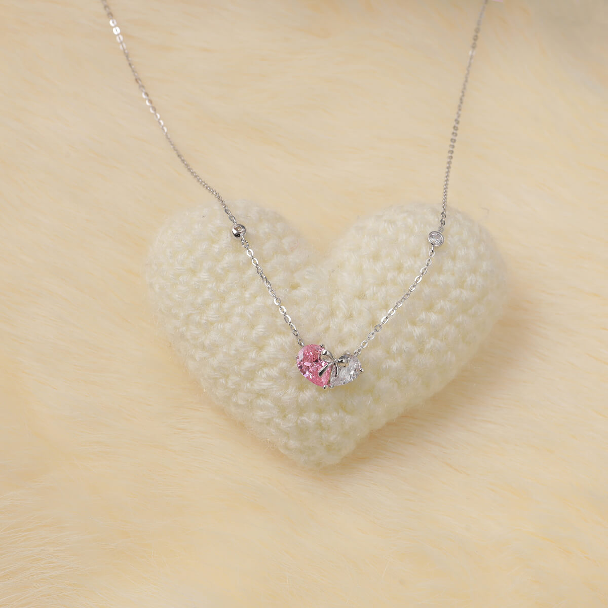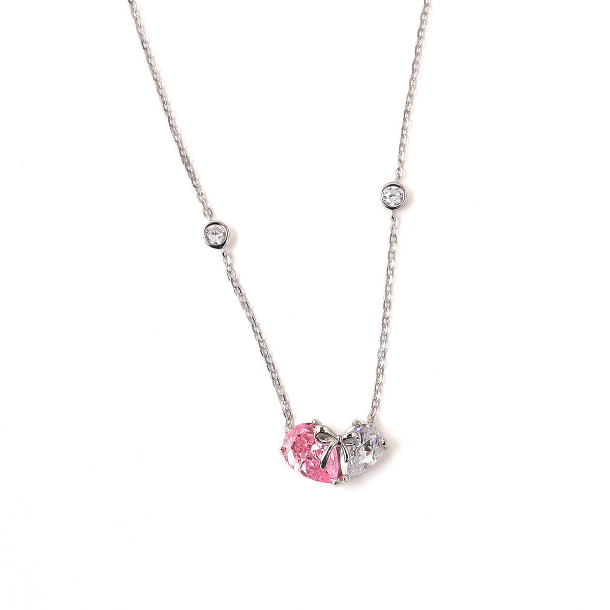 VEKENZA 925 Sterling Silver heart with bow pendant chain,Original Rhodium Plated, Swiss Zirconia Gift for Women & Girls