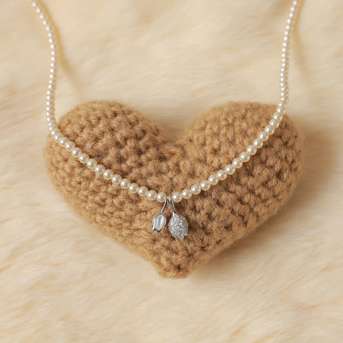 VEKENZA 925 Sterling Silver trendy pearl pendant chain,Original Rhodium Plated, Swiss Zirconia Gift for Women & Girls