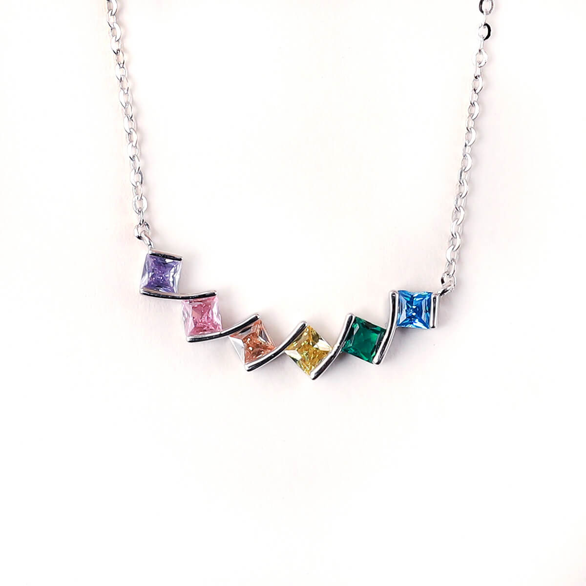 VEKENZA 925 Sterling Silver multi stone pendant chain,Original Rhodium Plated, Swiss Zirconia Gift for Women & Girls