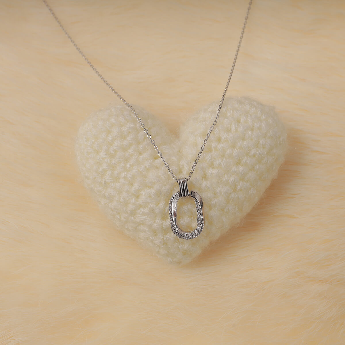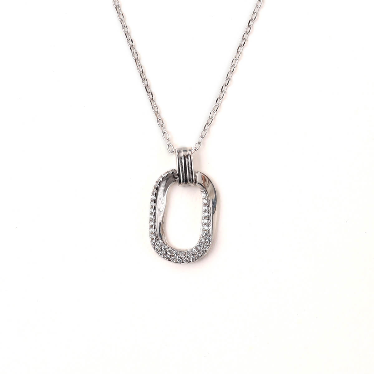 VEKENZA 925 Sterling Silver oval cirlce pendant chain,Original Rhodium Plated, Swiss Zirconia Gift for Women & Girls