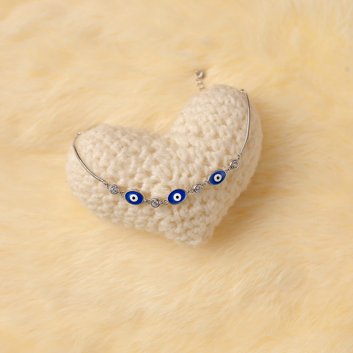 VEKENZA 925 sterling Silver heart shaped sky blue evil eye Bracelet, Adjustable | Rhodium Plated Women Bracelet, Gifts for Her| Multiple Design Options