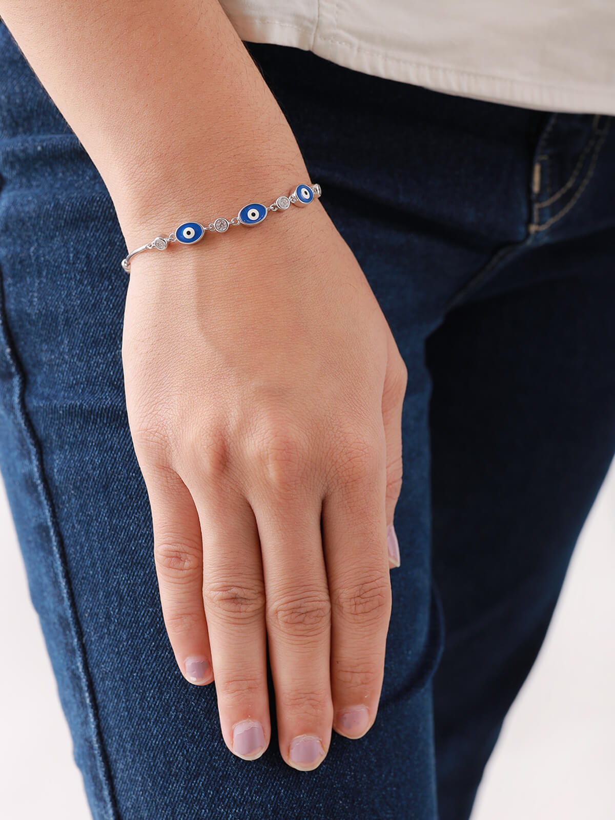 VEKENZA 925 sterling Silver oval shaped blue evil eye Bracelet, Adjustable | Rhodium Plated Women Bracelet, Gifts for Her| Multiple Design Options