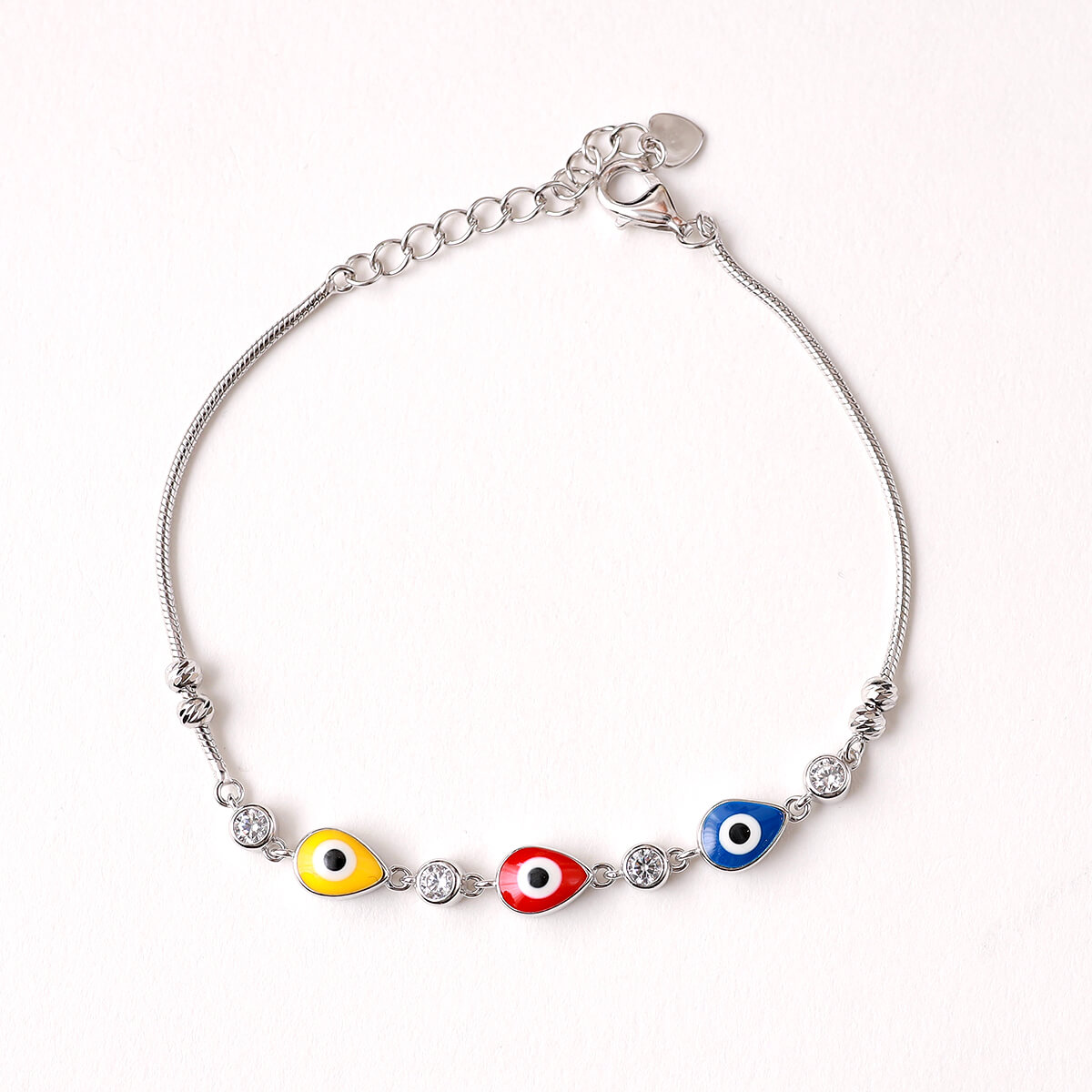 vekenza 925 sterling Silver pushpin multi color evil eye Bracelet, Adjustable | Rhodium Plated Women Bracelet, Gifts for Her| Multiple Design Options