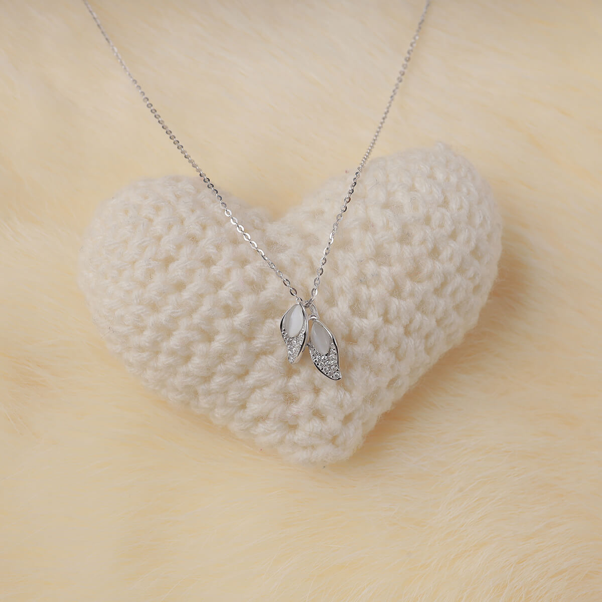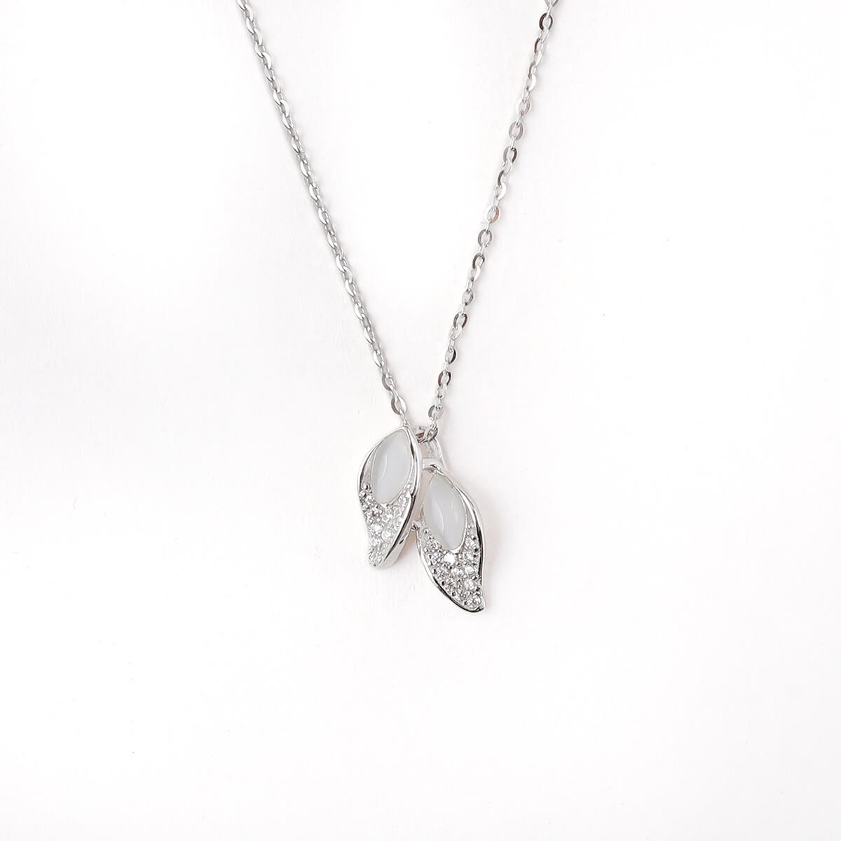 VEKENZA 925 Sterling Silver leafy shaped pendant chain,Original Rhodium Plated, Swiss Zirconia Gift for Women & Girls