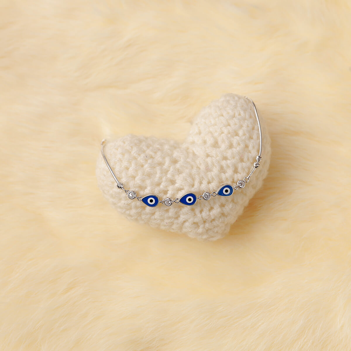 VEKENZA 925 sterling Silver round skyblue evil eye Bracelet, Adjustable | Rhodium Plated Women Bracelet, Gifts for Her| Multiple Design Options