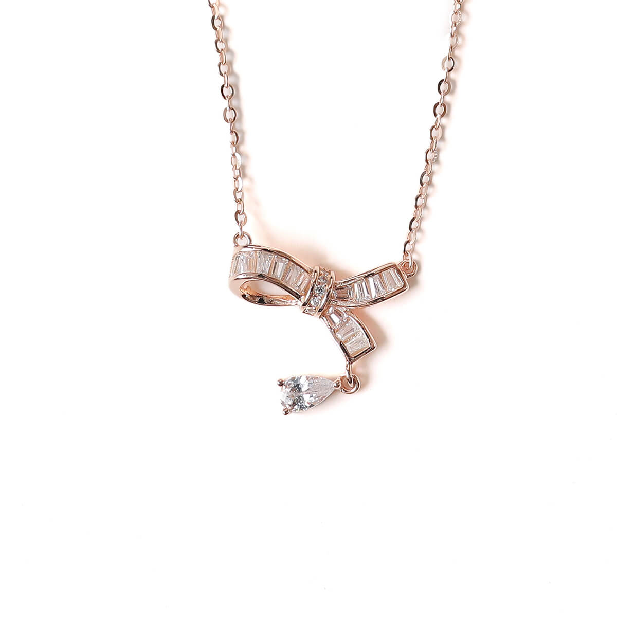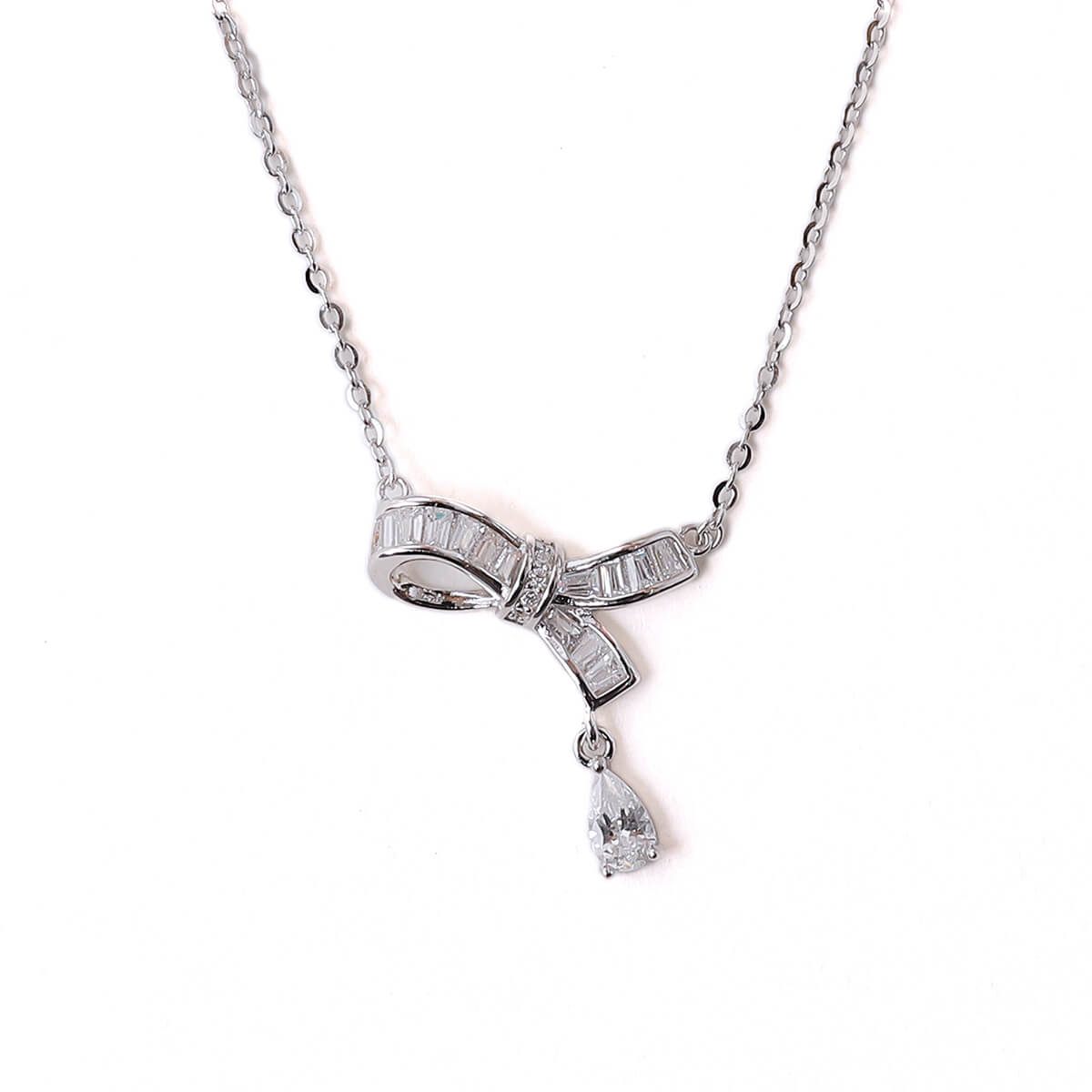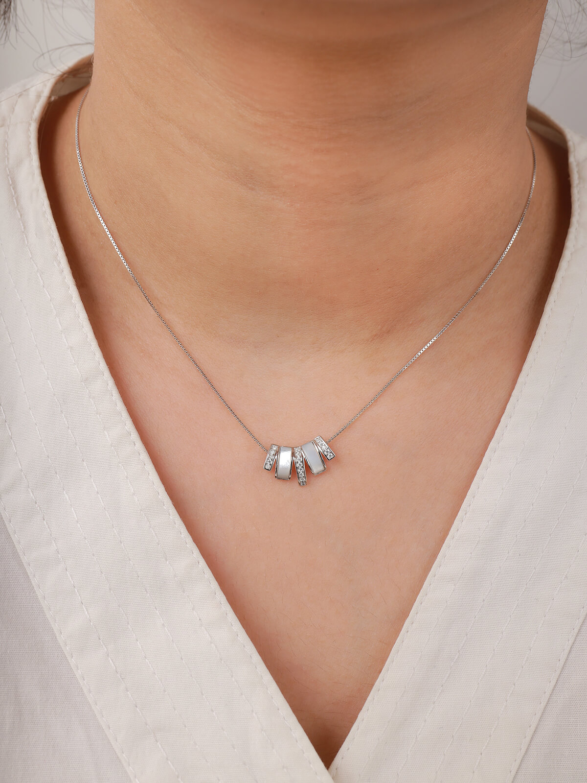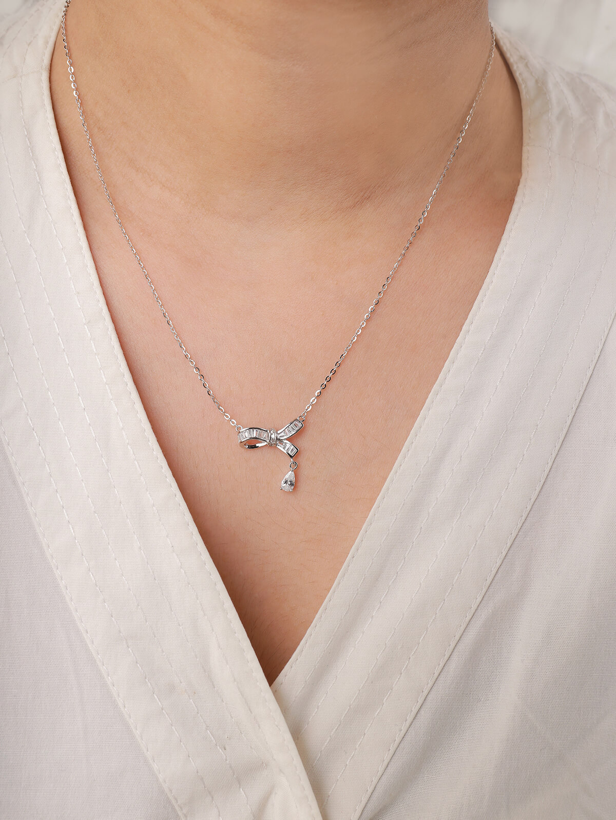 VEKENZA 925 Sterling Silver ribbon type pendant chain,Original Rhodium Plated, Swiss Zirconia Gift for Women & Girls
