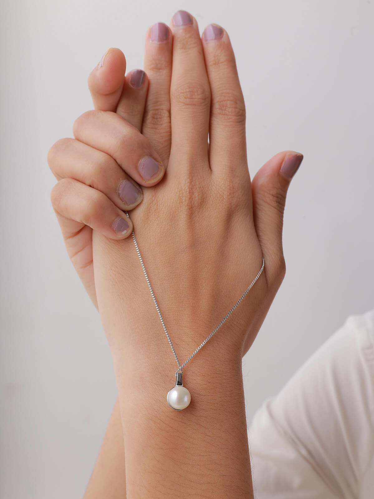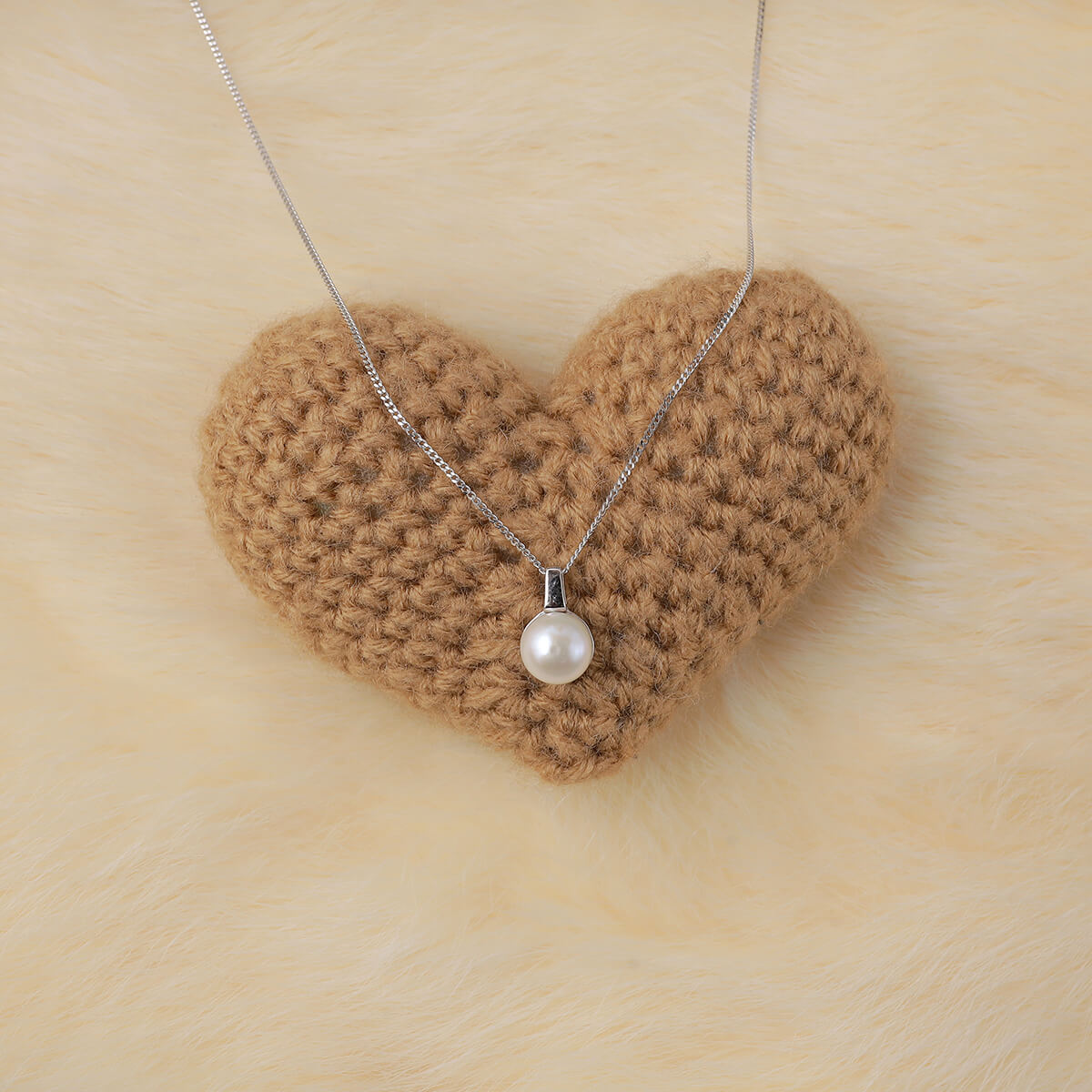 VEKENZA 925 Sterling Silver single pearl pendant chain,Original Rhodium Plated, Swiss Zirconia Gift for Women & Girls