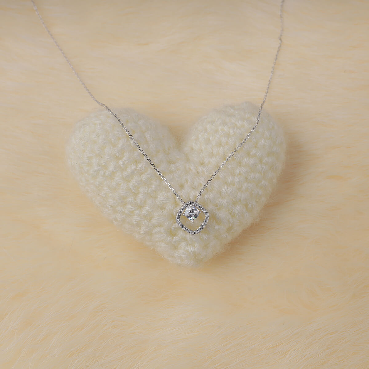 VEKENZA 925 Sterling Silver square shaped pendant chain,Original Rhodium Plated, Swiss Zirconia Gift for Women & Girls