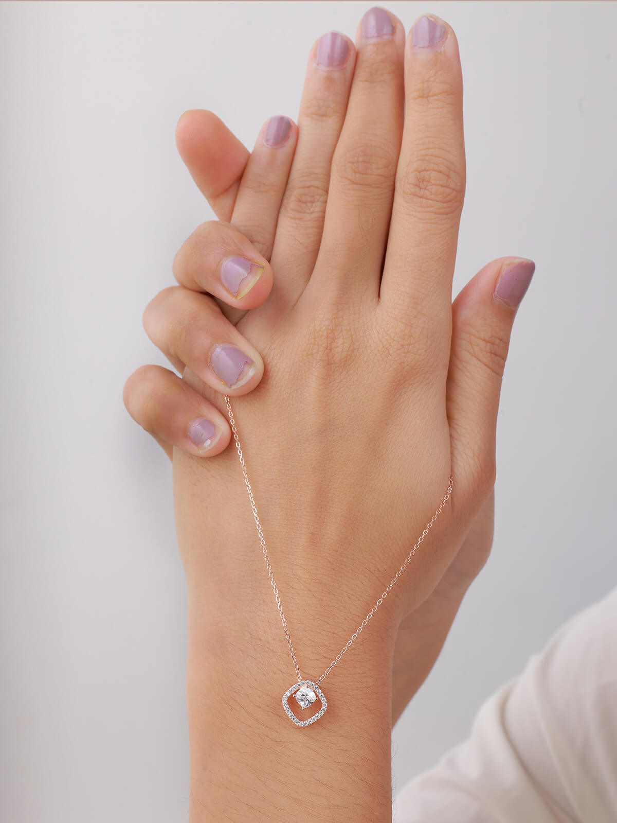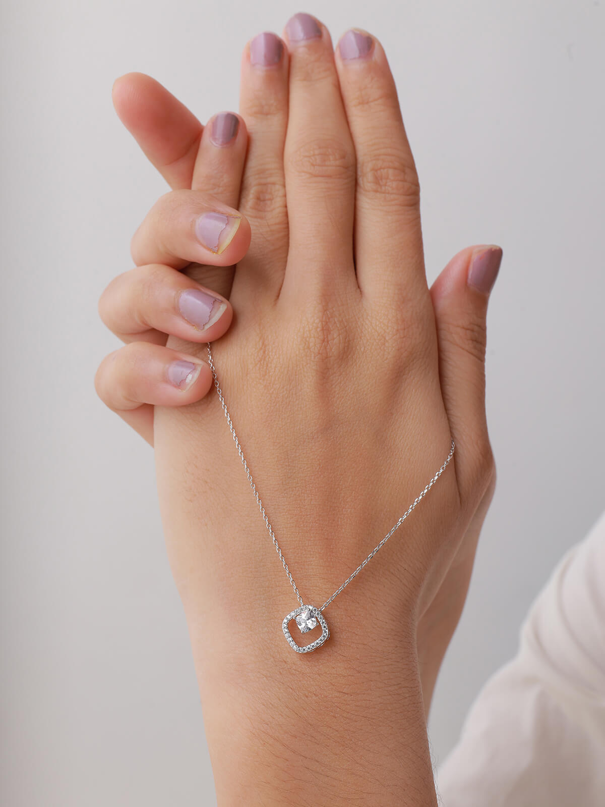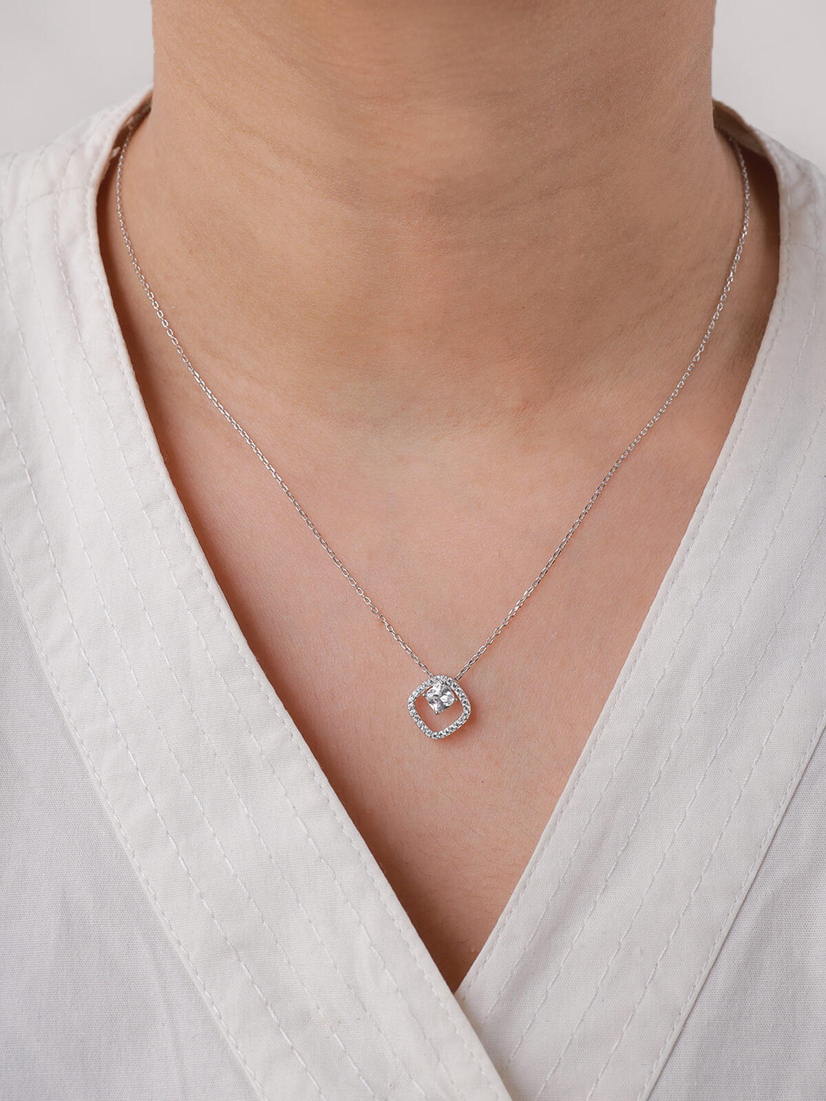 1 review for VEKENZA 925 Sterling Silver square shaped pendant chain,Original Rhodium Plated, Swiss Zirconia Gift for Women & Girls